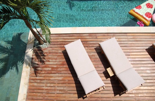 Additional amenities: Strong fiber-optic WiFi throughout the property. Pool towels and floats. Covered carport for motorbike parking with artisanal tile mural. Security room at front gate for night watchman (included). Lockable storage room with surfboard rack and space for beach toys and pool floats. Large shaded Balinese daybed and crocheted hammock. Housekeeping provided three days a week, adjustable per guest preferences.