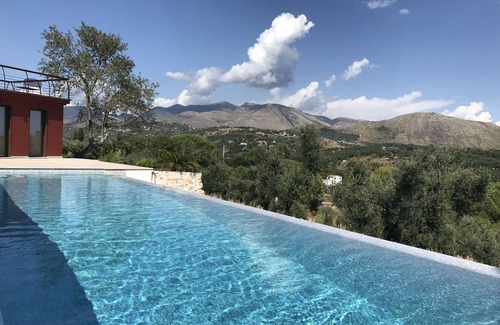 Italy differently. Between Rome and Naples, on the Ulysses Riviera, in the Regional Natural Park of the Aurunci Mountains (Parco Naturale Regionale dei Monti Aurunci), between the picturesque villages and seaside villages of Gaeta and Sperlonga, in the hills overlooking the sea, house of stone character with panoramic views, private 14 meters infinity pool, in an olive grove of 4 hectares, 9 kms from the sea by the cornice. Very quiet, ideal for resting and rejuvenating with family or friends. Close to daily departures for the Pontine Islands (Ventotene, Ponza). Possible day trips by train to Naples or Rome from Itri station (free parking). Ideal for discovering and experiencing southern Italy otherwise in a place apart off the beaten path and away from the influx of foreign tourists. Subject to availabiltiy a cook can be put at your disposal for your comfort and to taste the products of the soil and the local cuisine (not included in the price). Stays for 7 to 8 people maximum. Weekly cleaning obligatory not included of 90 euros. Sheets, bath towels and pool linen (not beach towels) included in the price. Accessible from Naples (80 kms) or Rome (140 kms) airports.