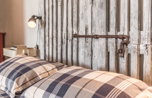 The hayloft is furnished in pure Tuscany style with wooden beamed ceilings and wooden floors, embellished with some creative touches inspired by some materials we recovered around Tuscan country-side.
