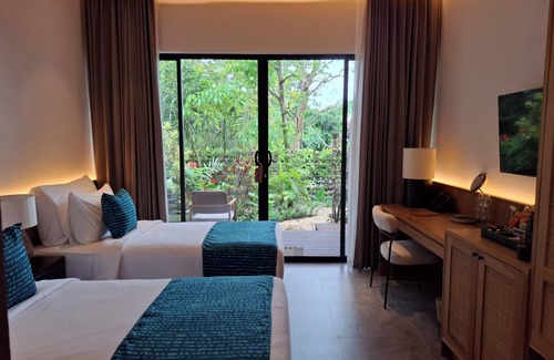 Surrounded by lush greenery, our six Garden View Rooms offer a peaceful escape designed to foster relaxation and a sense of tranquility. These new additions to the resort blend contemporary design with the natural beauty of our vertical garden. Each room is designed with a modern interior, soft tones, and a private terrace that invites you to enjoy the serenity of the outdoors. Perfect for unwinding after a day of island activities, the Garden View Rooms offer a quiet retreat while keeping you close to the resort's amenities, including The Terrace Restaurant, the Yoga Shala,