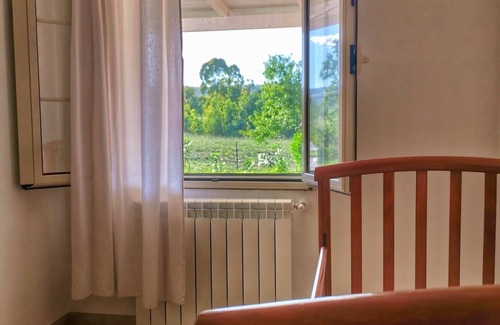 Ground floor apartment, consisting of a very large double bedroom with the possibility of adding beds with sides, a living room with kitchenette and sofa, a small room with a bunket bed. Comfortable apartment also for couples with children, large veranda for outdoor dining, barbecue, large outdoor spaces, very quiet, surrounded by greenery, 5 minutes from the sea. Equipped with washing machine, bathroom with shower, kitchen utensils, air conditioning. Parking in front of the house.