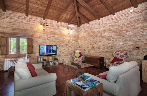 Layout: Ground floor: (Large kitchen(TV(satellite), oven, microwave, fridge-freezer), bedroom(double bed), Bedroom with bathroom(double bed, shower, washbasin, toilet, bidet, air conditioning), Bedroom with bathroom(single bed, double bed, shower, washbasin, toilet, bidet, air conditioning), Bedroom with bathroom(double bed, shower, washbasin, toilet, bidet, air conditioning), bathroom(shower, washbasin, toilet, bidet)) terrace(private), garden(private, 1000 m2), garden furniture, BBQ, parking