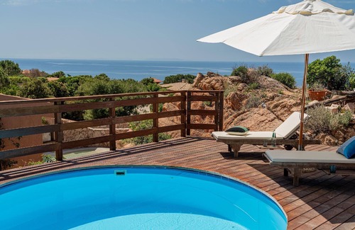 Beautiful single-family house with a sea view, amidst greenery and with a private pool, ideal for nature lovers and those seeking peace and quietThe holiday house is just 900 metres from the beach, nestled into the lush green landscape of the Costa Paradiso.It provides two double bedrooms, a living and dining room with an equipped kitchen, and a bathroom. It can accommodate four people.It is an idyllic little spot, ideal for all nature lovers and those seeking peace and quiet. Behind the house there is a terrace with a grill and wooden furniture, as well as a roofed dining space for meals outdoors and an area for relaxing and sunbathing by the private pool.The holiday complex has two lovely beaches. One is just a short walk away, the other is within easy access by shuttle bus (July to September). There are also many bays that are also accessible from the mainland, for enjoying the lovely crystal clear water of the Costa Paradiso. You can hire rubber dinghies locally for trips along the coast and go diving and mountain biking. There are restaurants, bars, a diving school and a fitness centre with a swimming pool. You can also play tennis and mini football, rounding off the facilities.