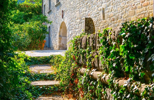 The first thing to strike you about Pieve del Borgo must be its old history, noticeable right from the large external gate. A Byzantine fortress in the IV century AD, it was a castle belonging to the Abbey of Sant'Ellero during the papacy of Innocent III. Set among the wooded Romagna hills, where the only noise is that of the wind and the flowing river, Pieve del Borgo is today unique in its kind, having passed, from 1400 onwards, under various dominions, such as the Florentine Republic, the Grand Duchy of Tuscany (until 1859) and the Province of Florence up until 1923. Strolling among the gardens that were once a meeting point of culture and tradition, gazing out over the valley, sleeping in the renovated sacristy, being enthralled by the deconsecrated church: all this is Pieve del Borgo and is possible thanks to more than 25 years of intense work, of thousands of stones laid with sweat and toil, of tons of dug-up earth, of materials chosen to guarantee a non-invasive restoration and to an enormous passion and respect for its history, noticeable in every corner of this incredible place.