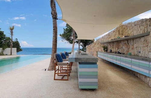 Cool aqua tones, polished pebble floors, and accents of bamboo, teakwood, and shell create a space that is both contemporary and comforting. Every room (except the serene master pavilion tucked into the garden) enjoys uninterrupted ocean views.