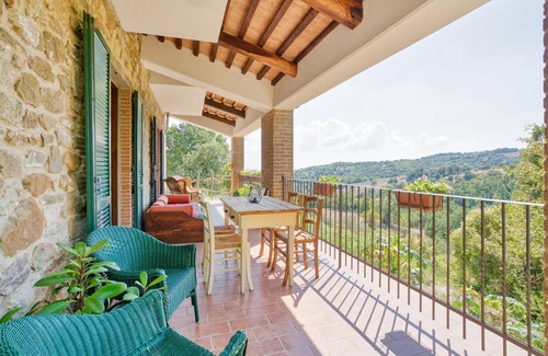 You can already feel the anticipation of a wonderful holiday as you drive the last kilometre along the well-maintained gravel road to your house, which is located in a beautiful forest. The spacious country house offers space for a holiday with the whole family and welcomes you with a cosy and authentic interior. From the balconies you have a wonderful panoramic view and on the terrace you can enjoy the wonderful Tuscan weather all day long. Here you can have breakfast in the morning or round off the day with a glass of local wine.