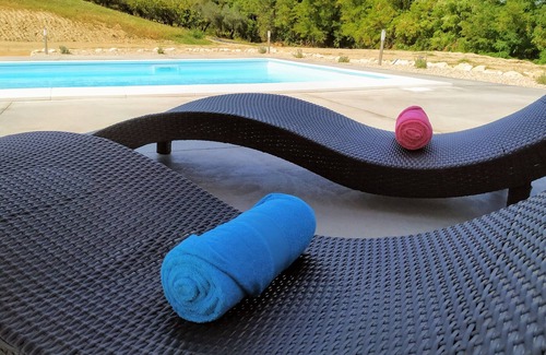 In Italy it's all about being outside. Set in one hectare of private grounds we have two large outdoor terraced areas on the ground floor of the villa; to the front we have a covered terrace plus a large wooden decking area (6 x 8m) ideal for exercising/yoga or extending outdoor living space. To the rear we have another covered terrace and pergola, plus a 200 sqm patio surrounding a 12 x 5m salt water swimming pool with solar shower. The pool is open from May (opening date dependant on weather) until end of September and possibly October if warm enough. There is plenty of room to relax, eat alfresco and cook on our outdoor kitchen with barbecue, sink and double gas burner.