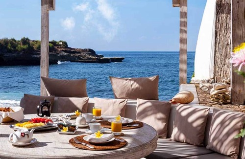 This beautifully designed villa is set on the crescent of Sandy Bay in Nusa Lembongan, a 30-minutes boat ride off the east coast of Bali and was created as a luxury beach home for couples, groups of friends and extended families.